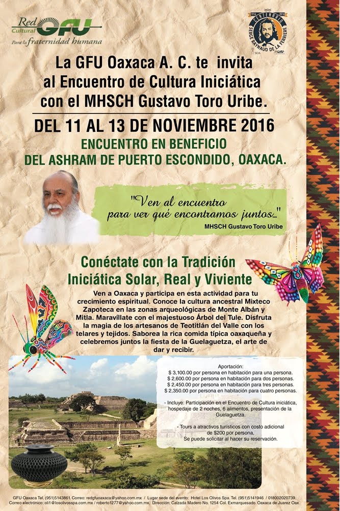 En Oaxaca tendremos dos grandes eventos de los cuales toda la hermandad Nacional e incluso Internacional podrá disfrutar y para ello pido toda su colaboración para su difusión en sus sectores, ustedes como Guardianes de Colegios en contacto con los Guardianes de los Colegios de Getuls y la hermandad de su sector pueden hacer llegar esta información, solicito su apoyo para la difusión a través de sus correos, face y los medios a su alcance, no se lo pierdan.